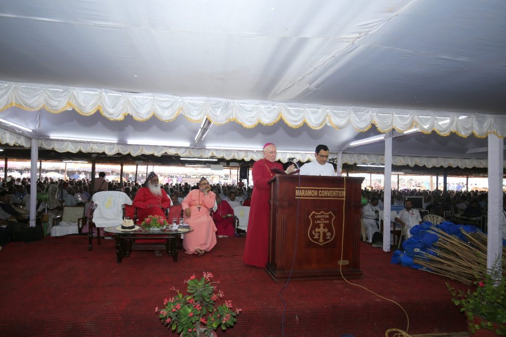 The 123rd Session of the Maramon Convention began on 11th February 2018 with the prayer by Rev. Sabha Secretary Rev. K.G.Joseph. Rev. George Abraham Kottanad, General Secretary of Mar Thoma Evangelistic Association welcomed all the guests this convention. In the presidential address Rt.Rev.Dr. Euyakim Mar Coorilos Episcopa reminded that the role of the convention is the transformation of the mind towards Christ and complete dedication of our minds. His Grace the Most Rev. Dr. Joseph Mar Thoma Metropolitan inaugurated the convention. In Metropolitan’s inaugural messsage, Tirumeni recalled the past glory of the river Pamba its heritage and the human invasion to the nature.  Tirumeni exhorted the role as Christians not to be as the rulers but as the caretakers of the nature.