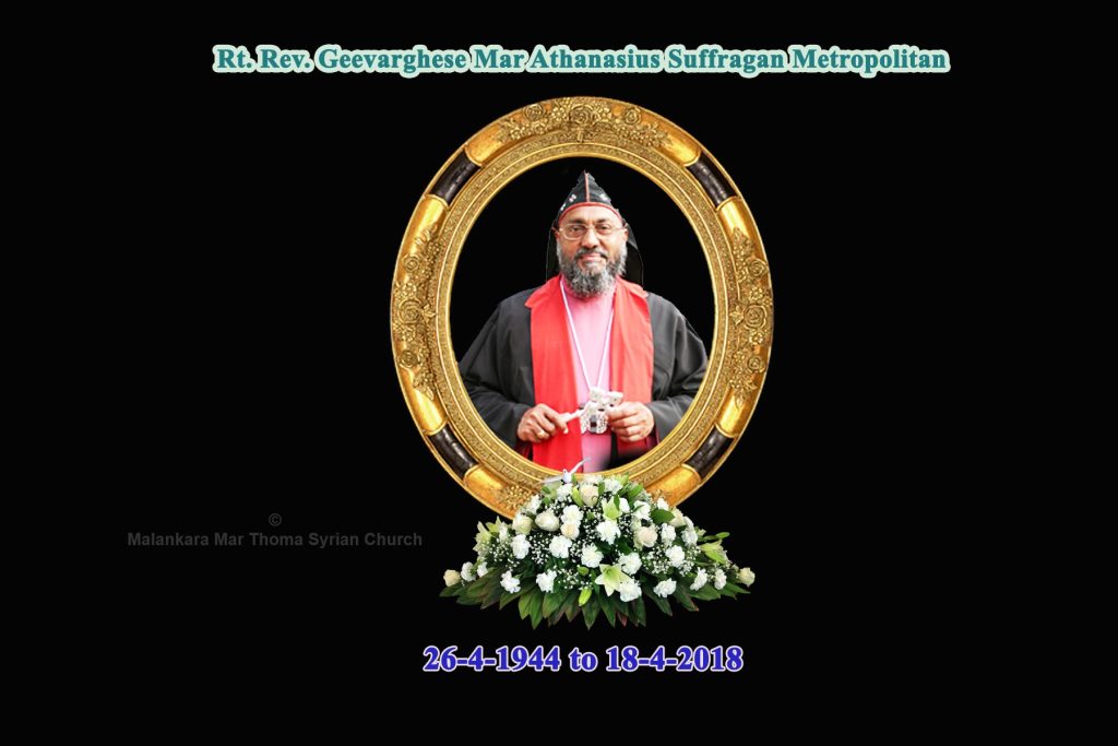 The Mar Thoma Church deeply mourns the unexpected passing away of Suffragan Metropolitan Rt. Rev. Geevarghese Mar Athanasius Suffragan Metropolitan Thirumeni at P.V.S. Memorial Hospital, Ernakulam at 4:40 AM on 18-4-2018.. Thirumeni is fondly remembered for His soul stirring oration marked with Christian maturity and vast knowledge in human relations. Thirumeni who is keen in keeping relationships systematically was instrumental in materializing many humanitarian projects for the upliftment of the poor and needy. As Thirumeni completes His earthly sojourn, Church praises Her Lord for the outstanding life and witness of Thirumeni.