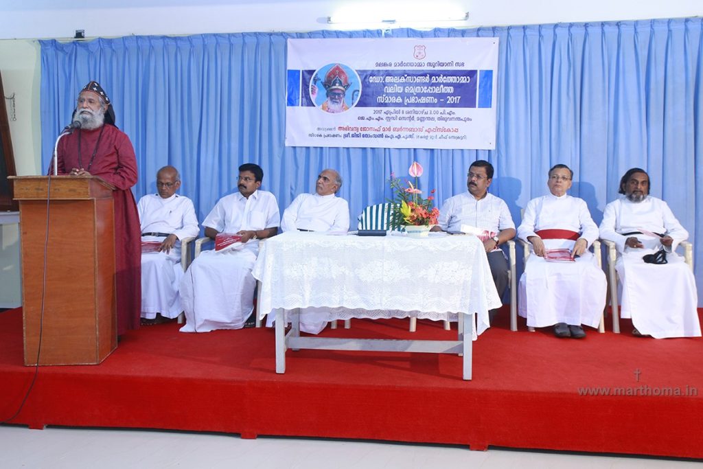 Dr. Alexander Mar Thoma Valiya Metropolitan Memorial Lecture 2017 was held at JMM Study center Tiruvananthapuram. Rt. Rev. Joseph Mar Barnabas Episcopa presided over the meeting. Sri. Jiji Thomson IAS (former chief secretary of Kerala) delivered the Memorial Talk. Jiji Thomson recollected the service and missionary zeal rendered by Alexander Mar Thoma Valiya Metropolitan