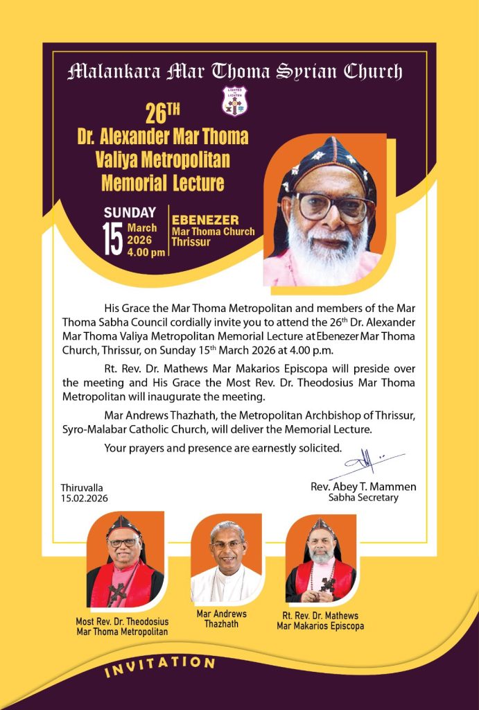 26th DR. ALEXANDER MAR THOMA VALIYA METROPOLITAN MEMORIAL LECTURE